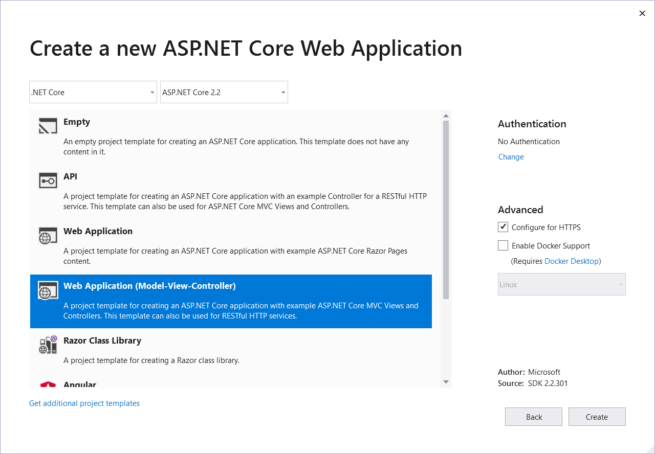 From Visual Studio 2019 (or 2017, it's not important), select a new ASP.NET Core project from the New menu items.